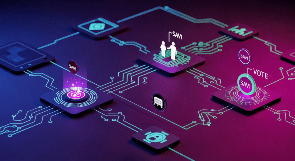 Savitri is not just a technological infrastructure—it’s a native digital economy, designed to redistribute value fairly, securely, and automatically through a decentralized network. At the heart of this system are the SAVI and VOTE tokens, two complementary assets powering participation, automation, and governance across the ecosystem.